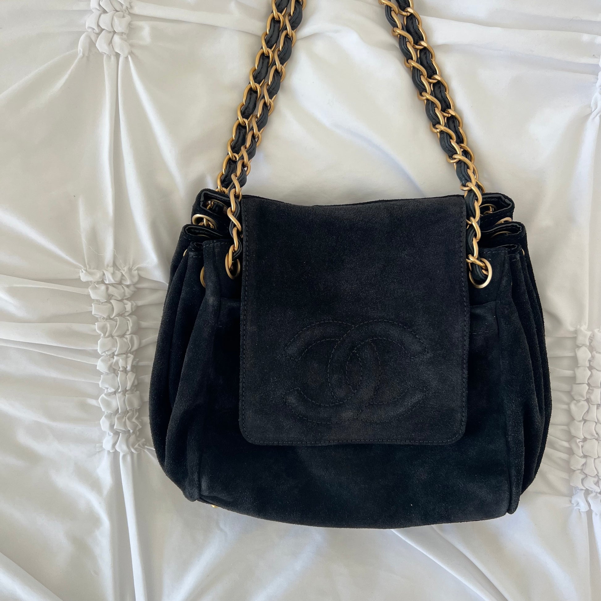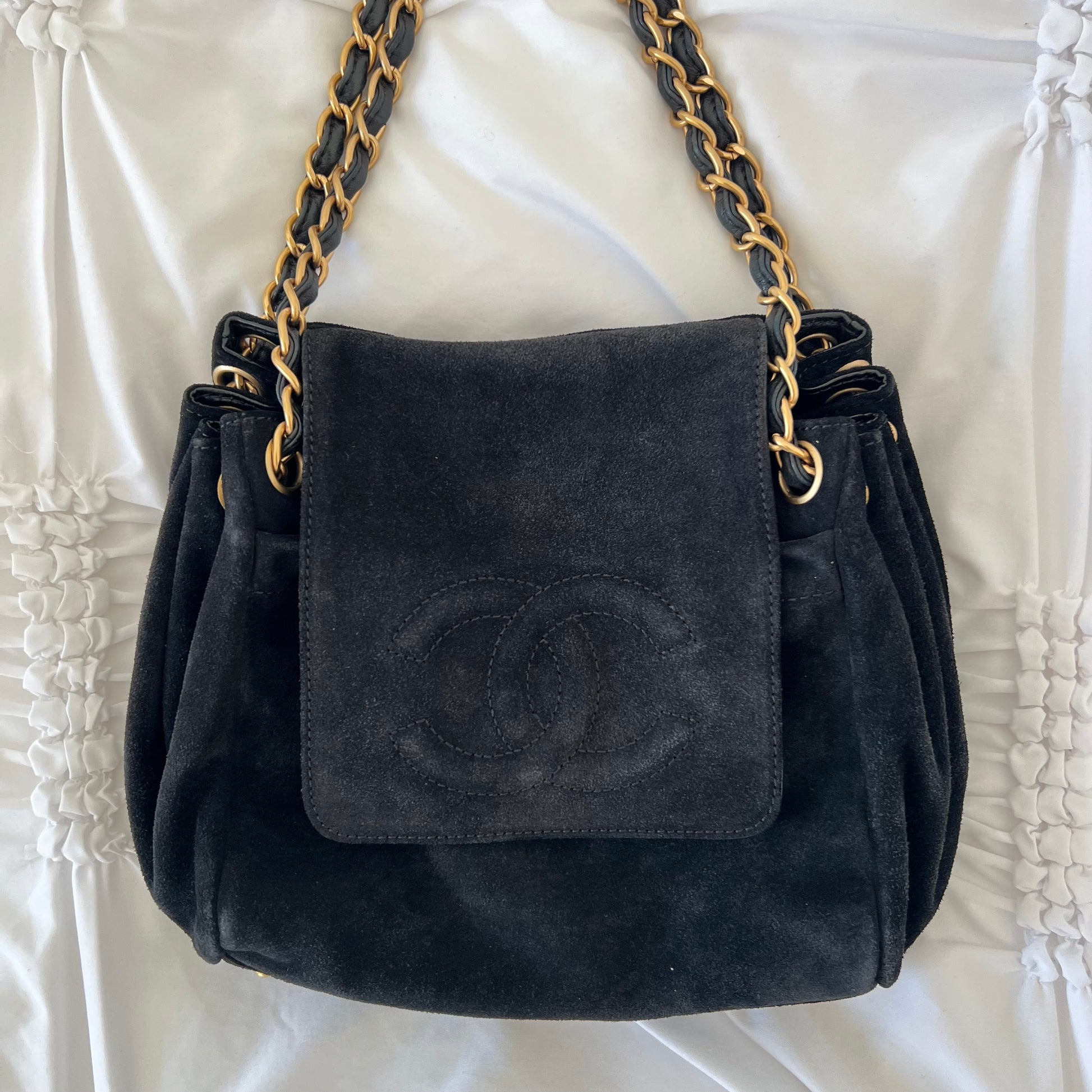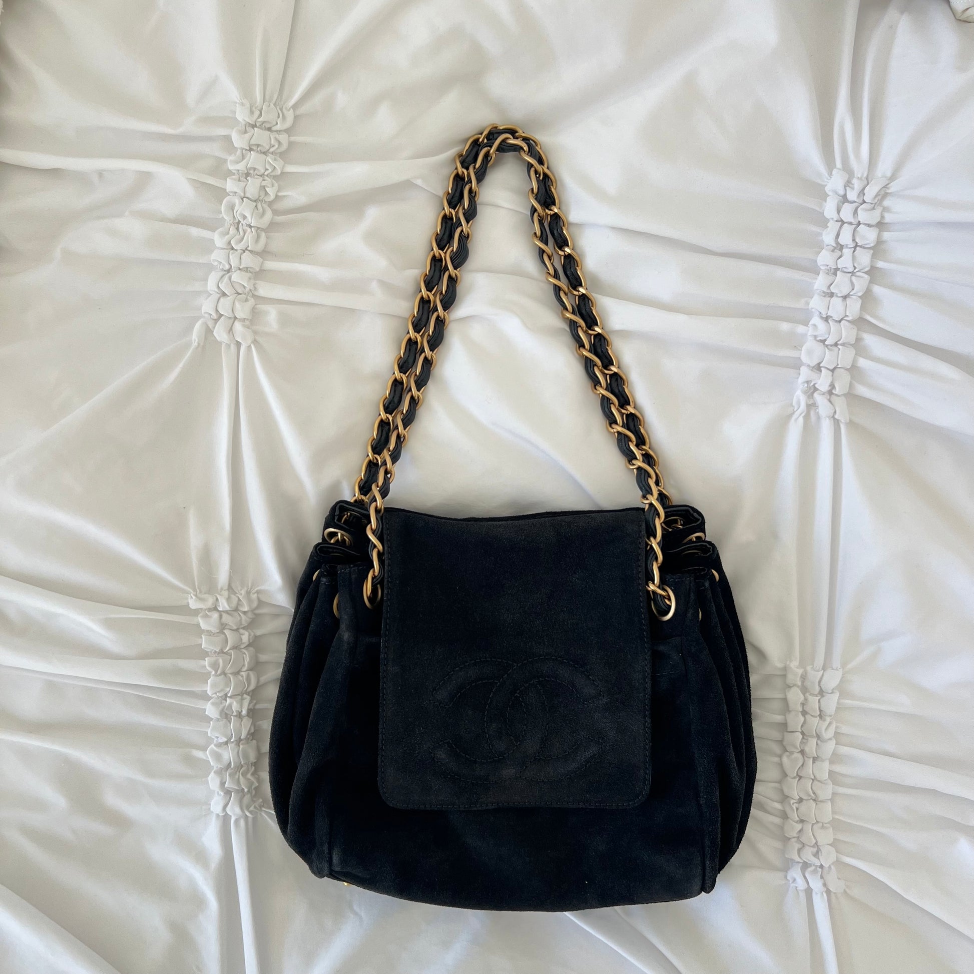 Chanel Black Suede Coco Mark Chain Bag