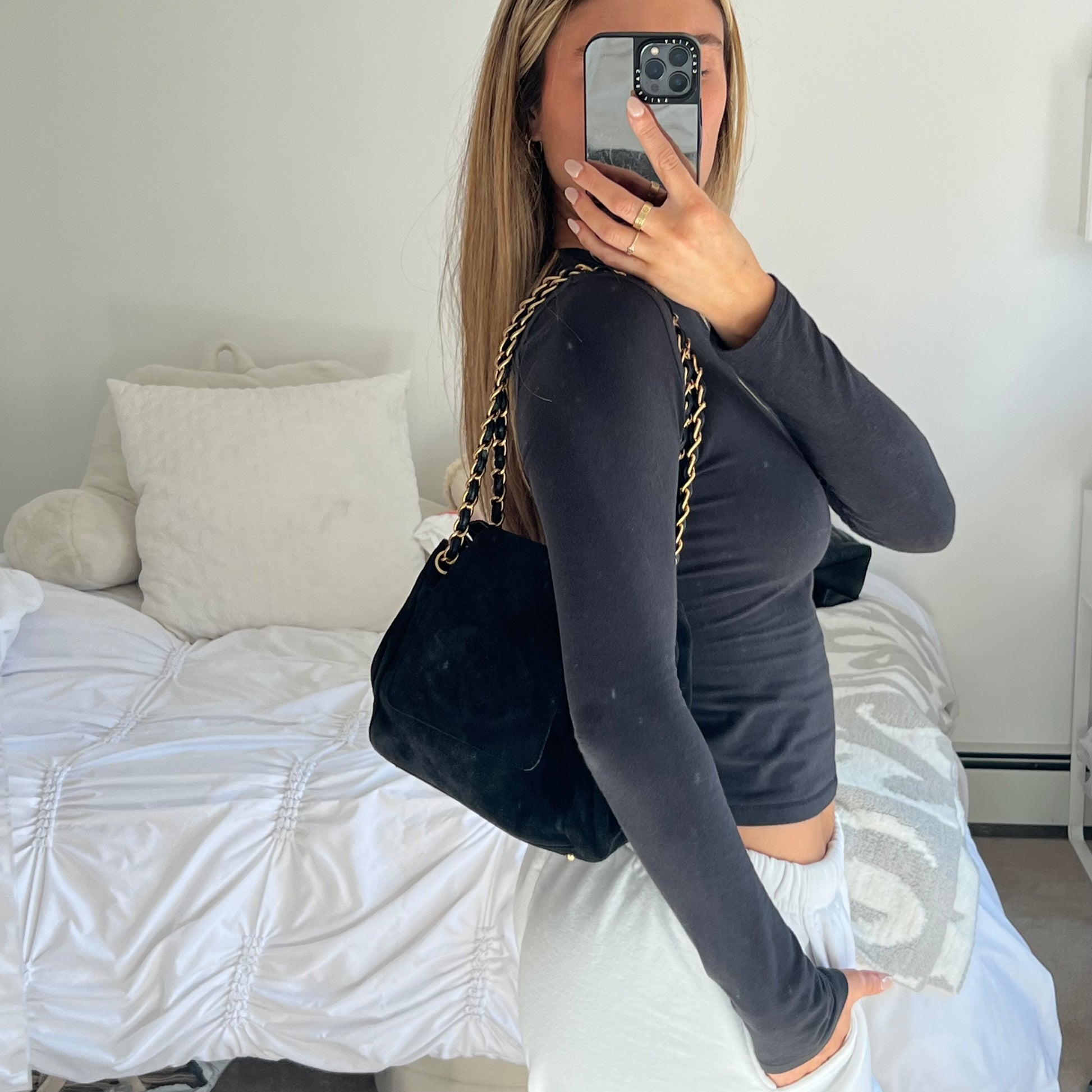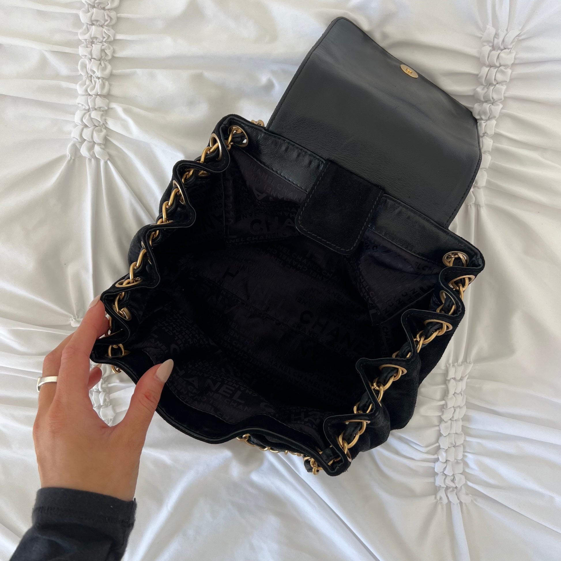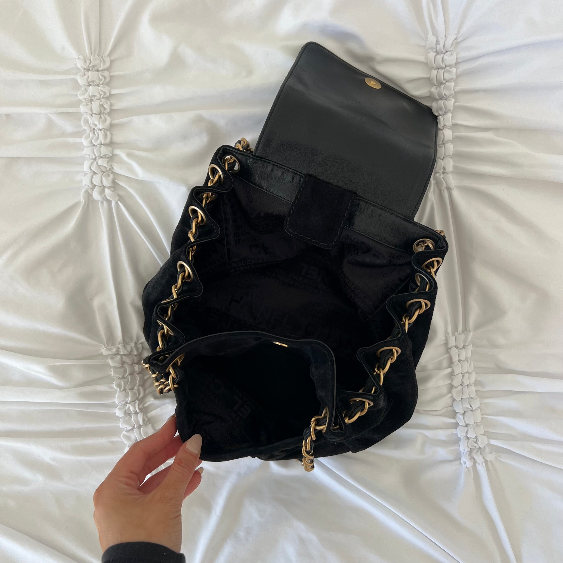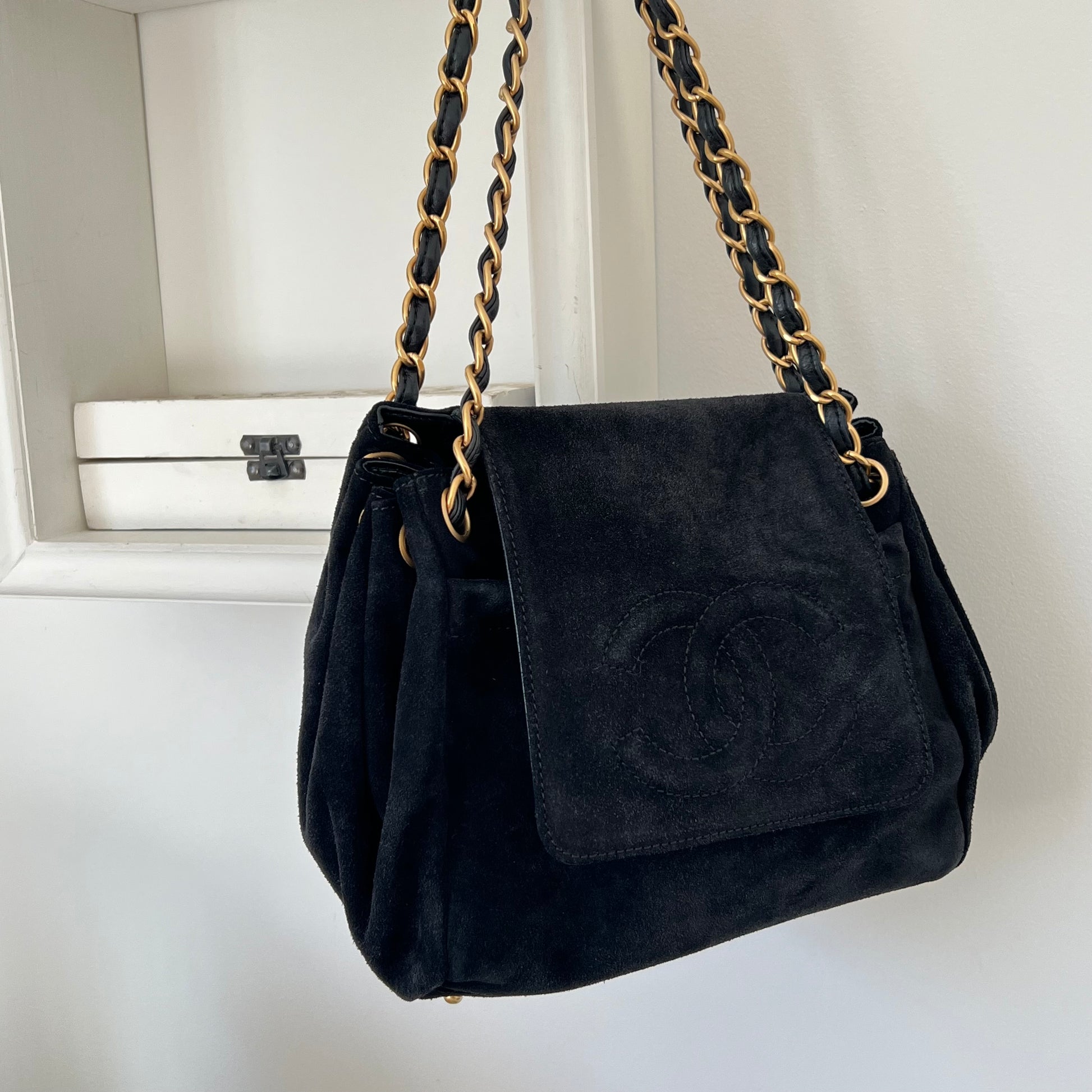 Chanel Black Suede Coco Mark Chain Bag