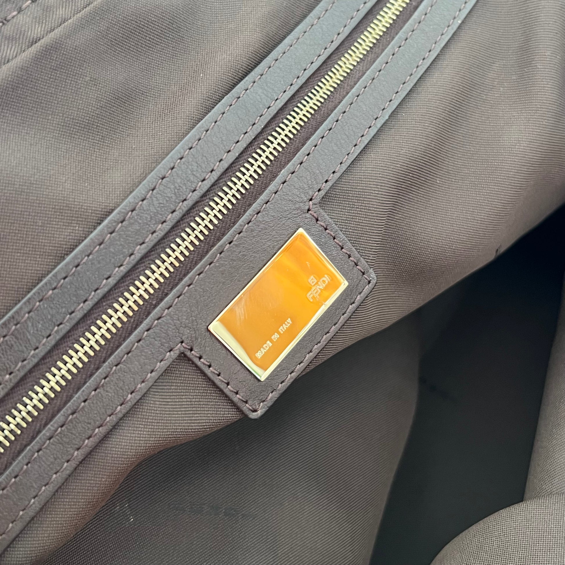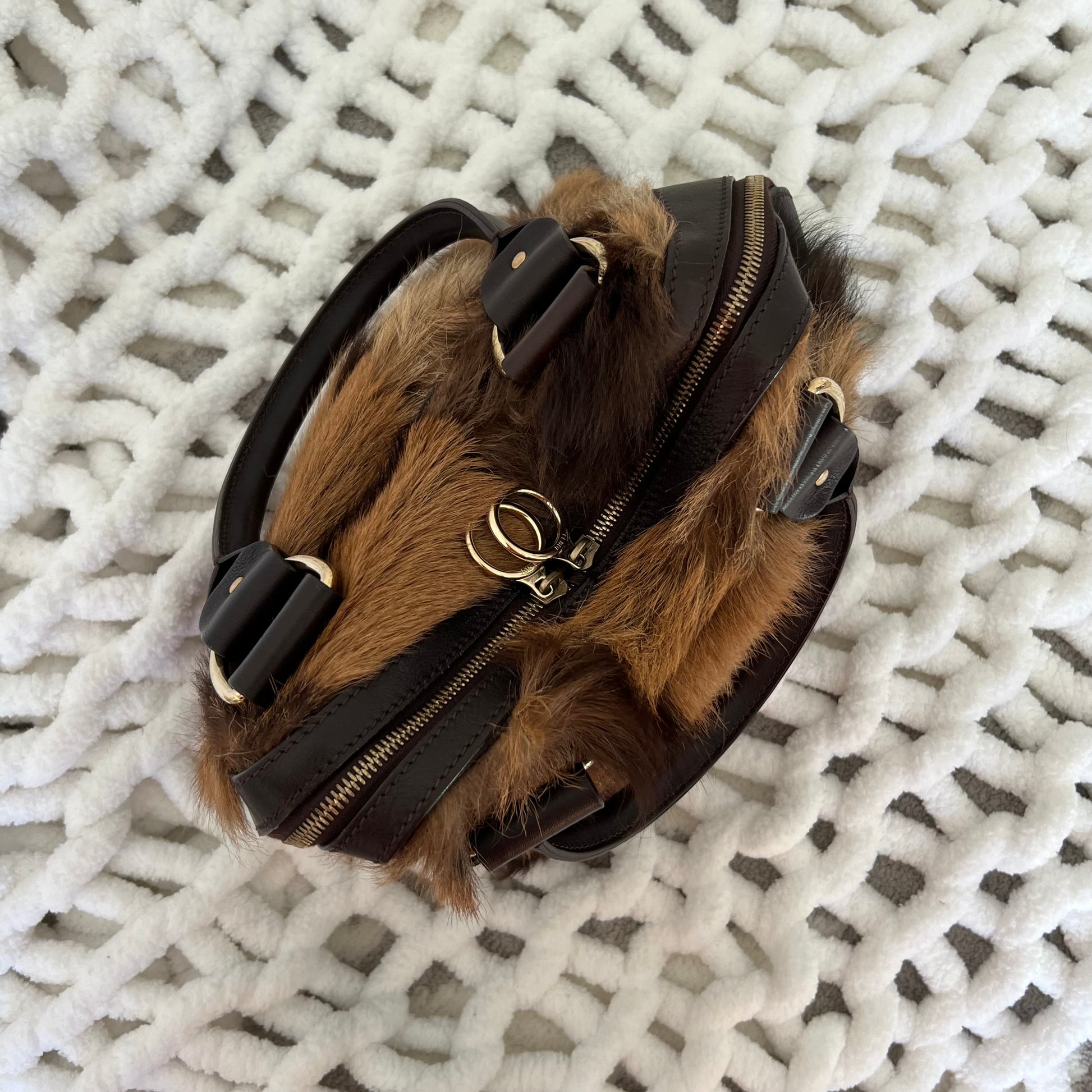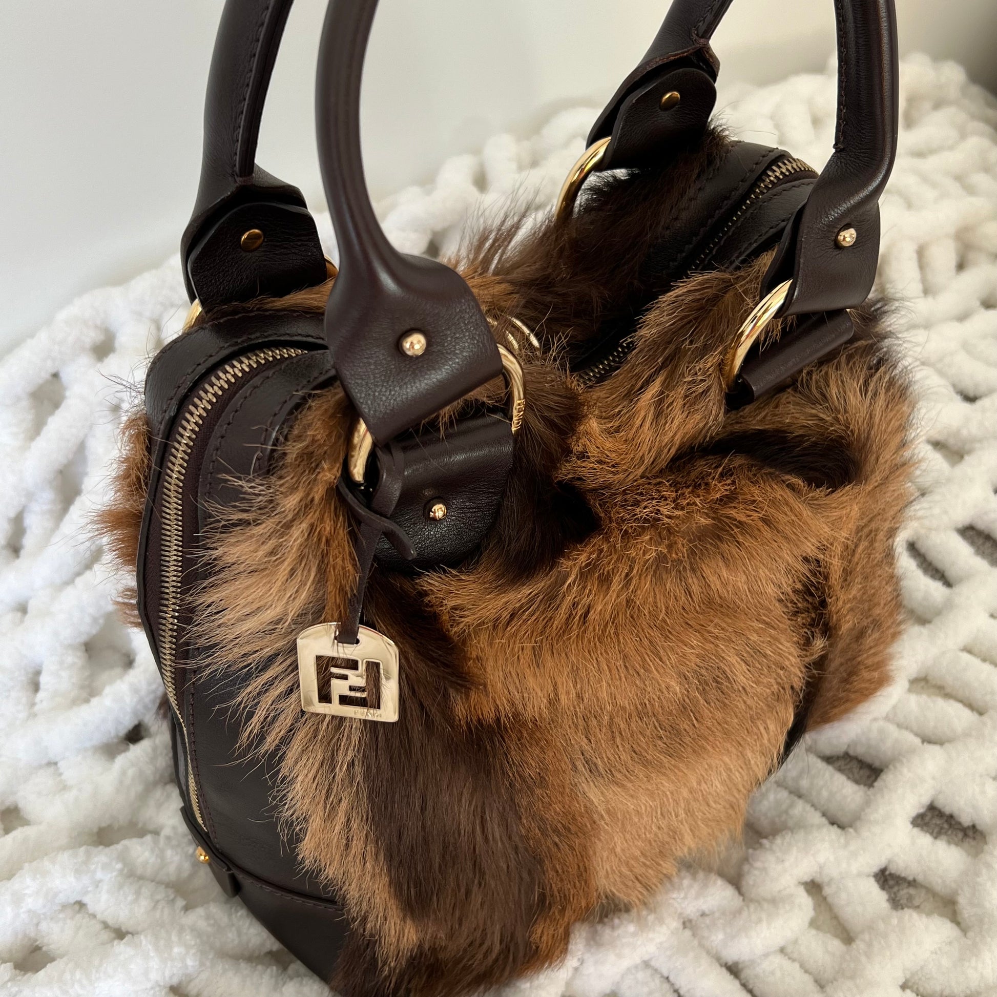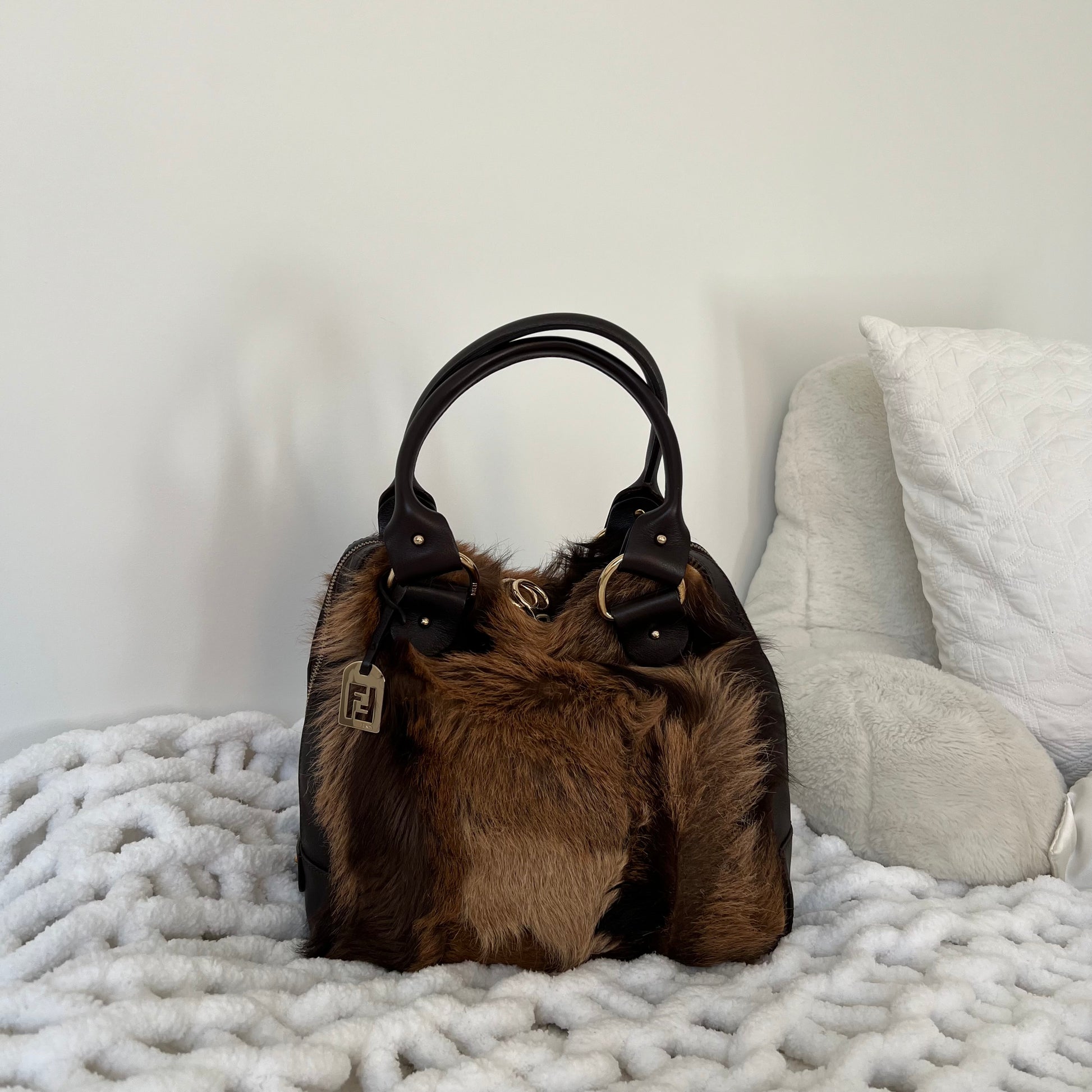 description: calf brown leather, gold hardware, 1 main pocket, 1 interior zipper, logo charm