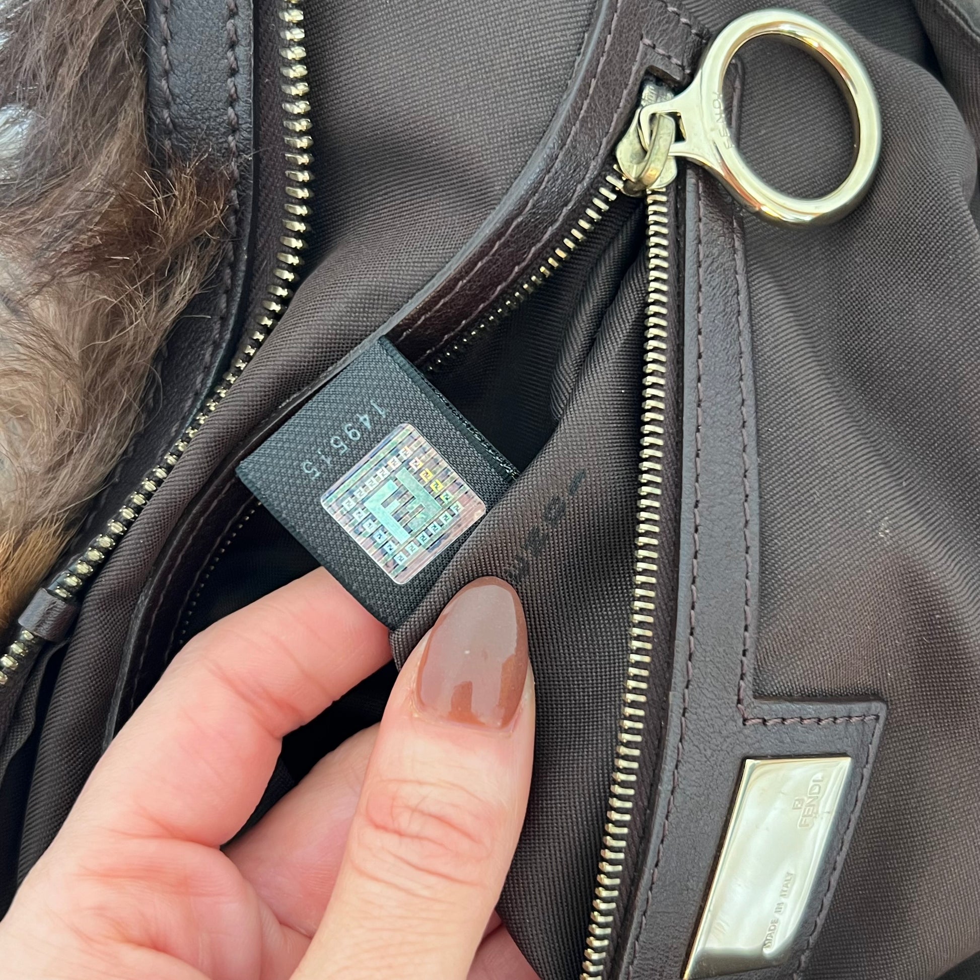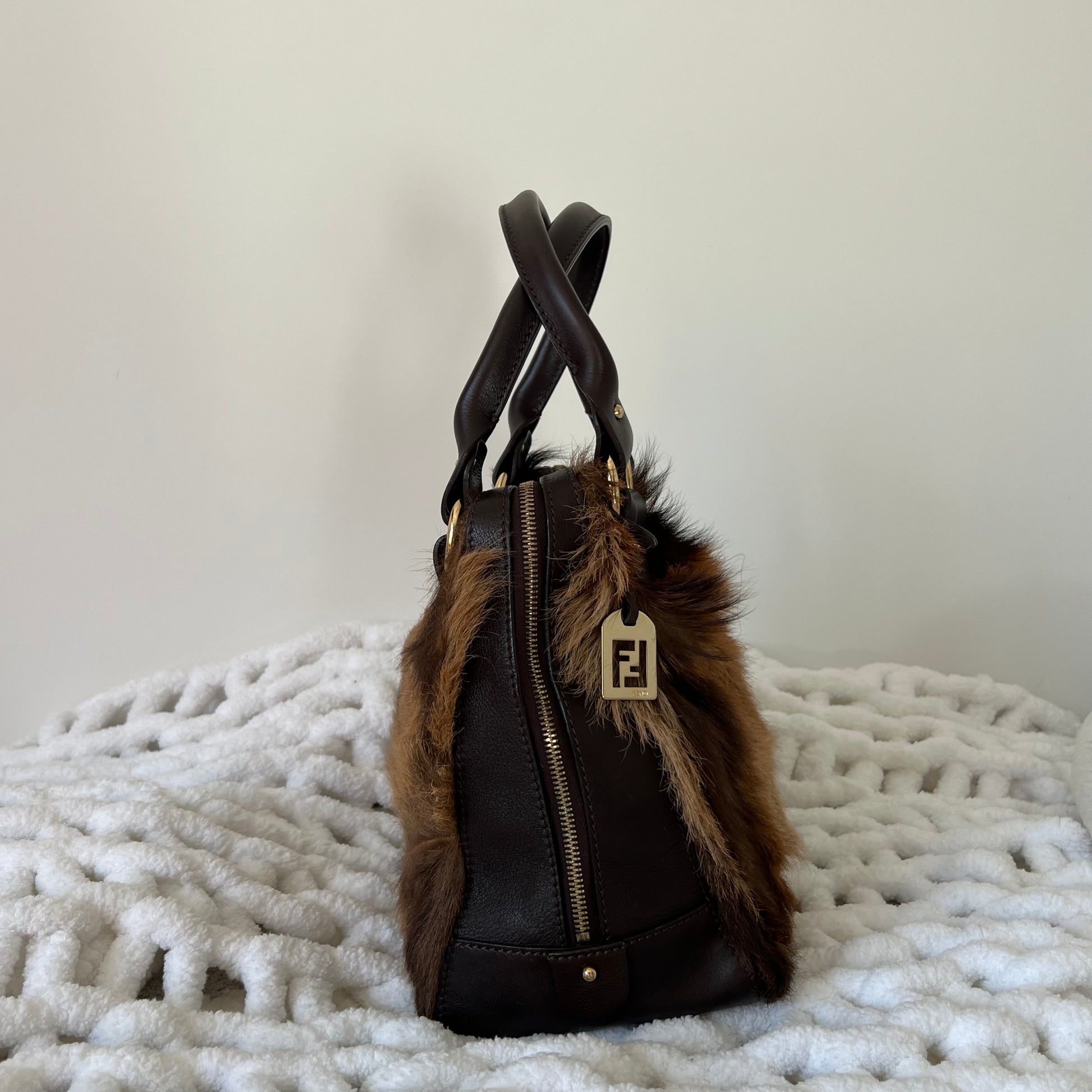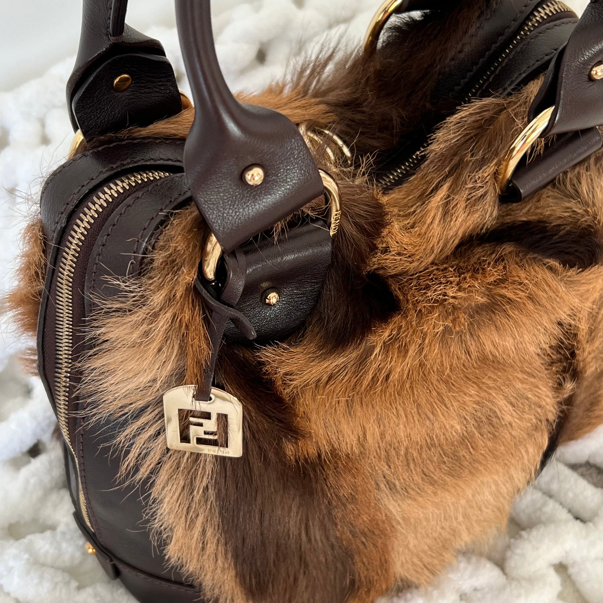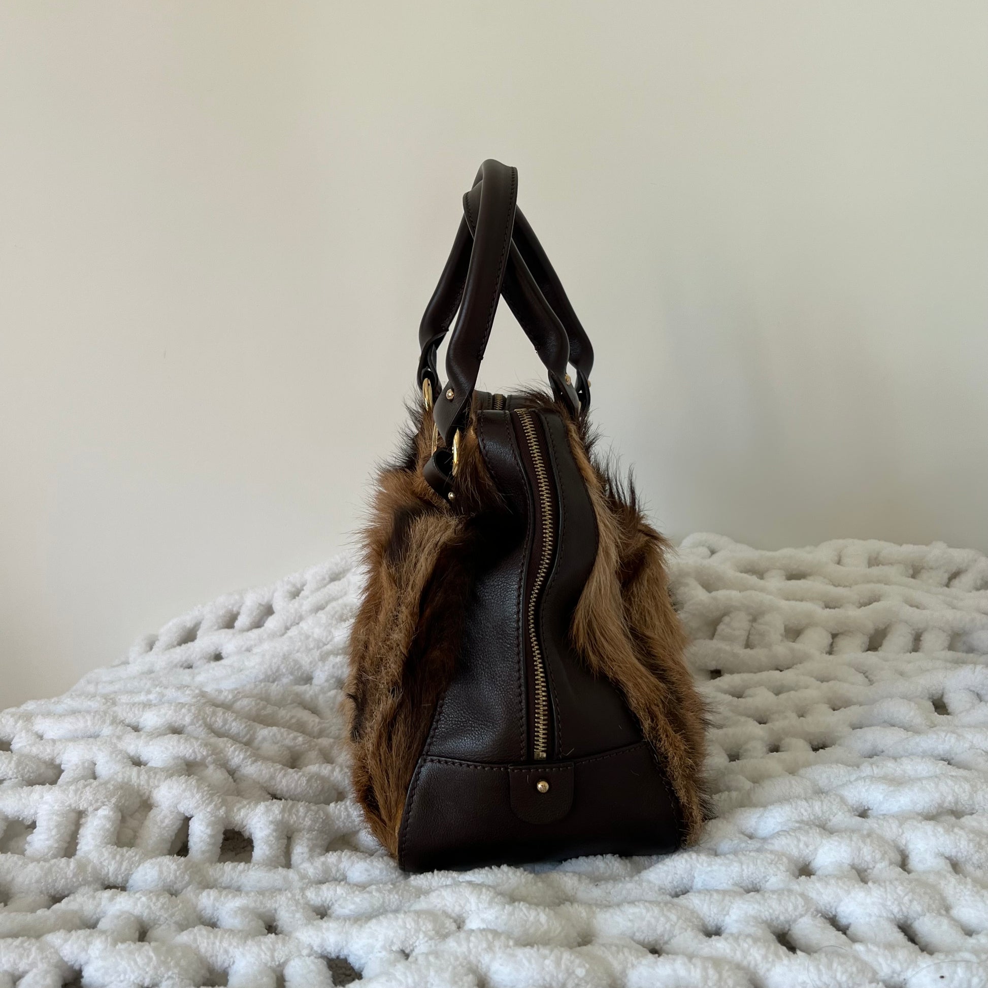 description: calf brown leather, gold hardware, 1 main pocket, 1 interior zipper, logo charm