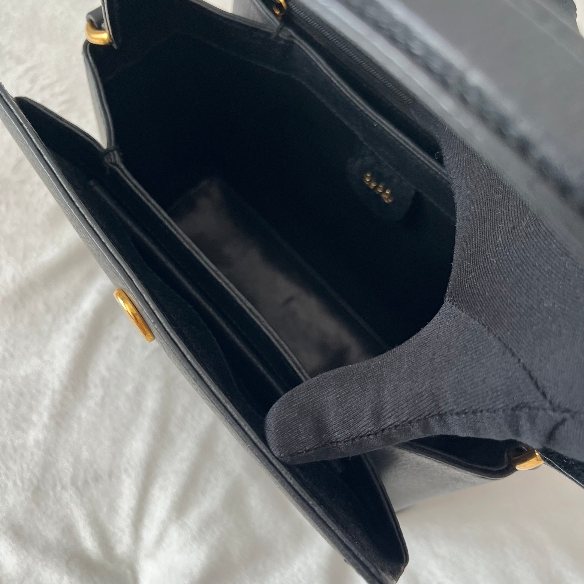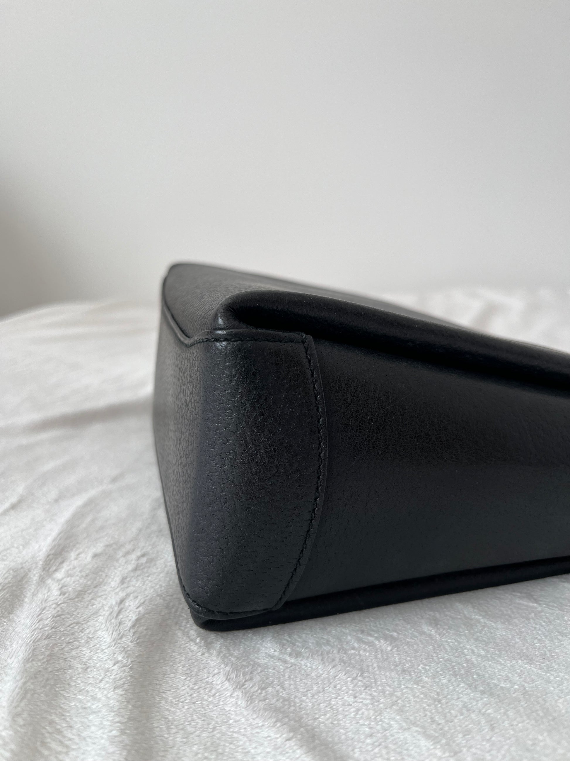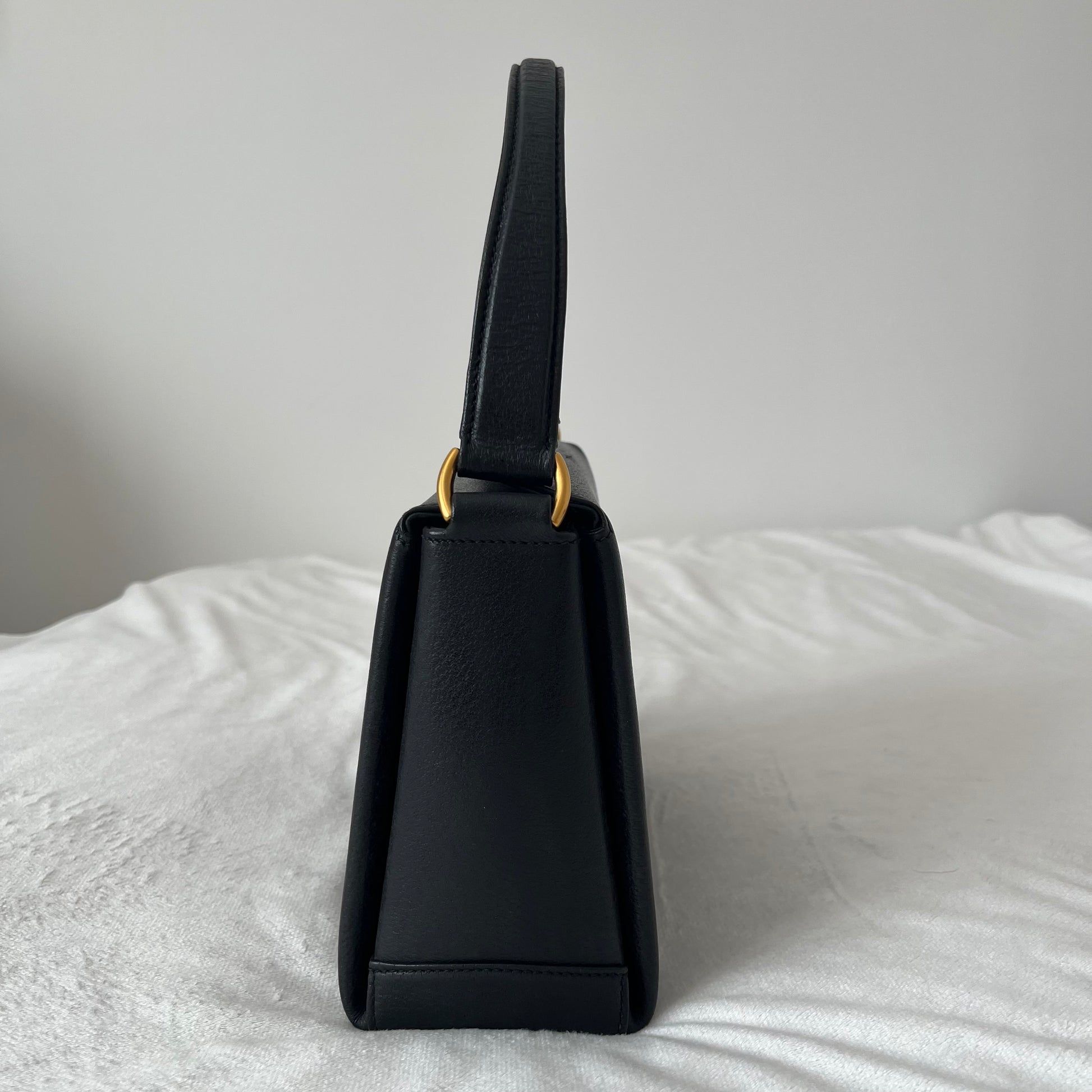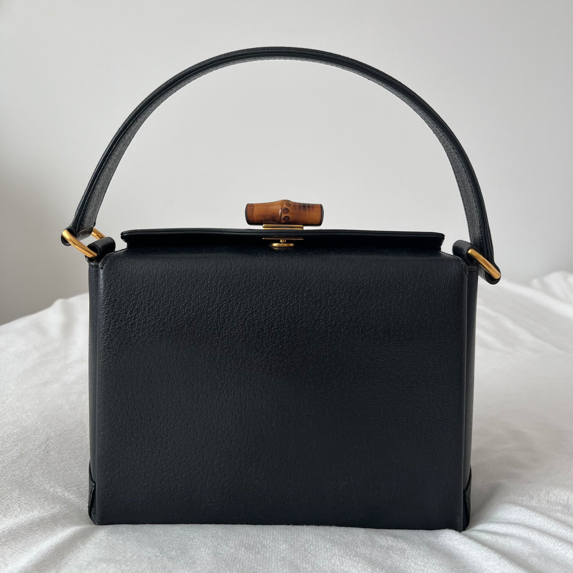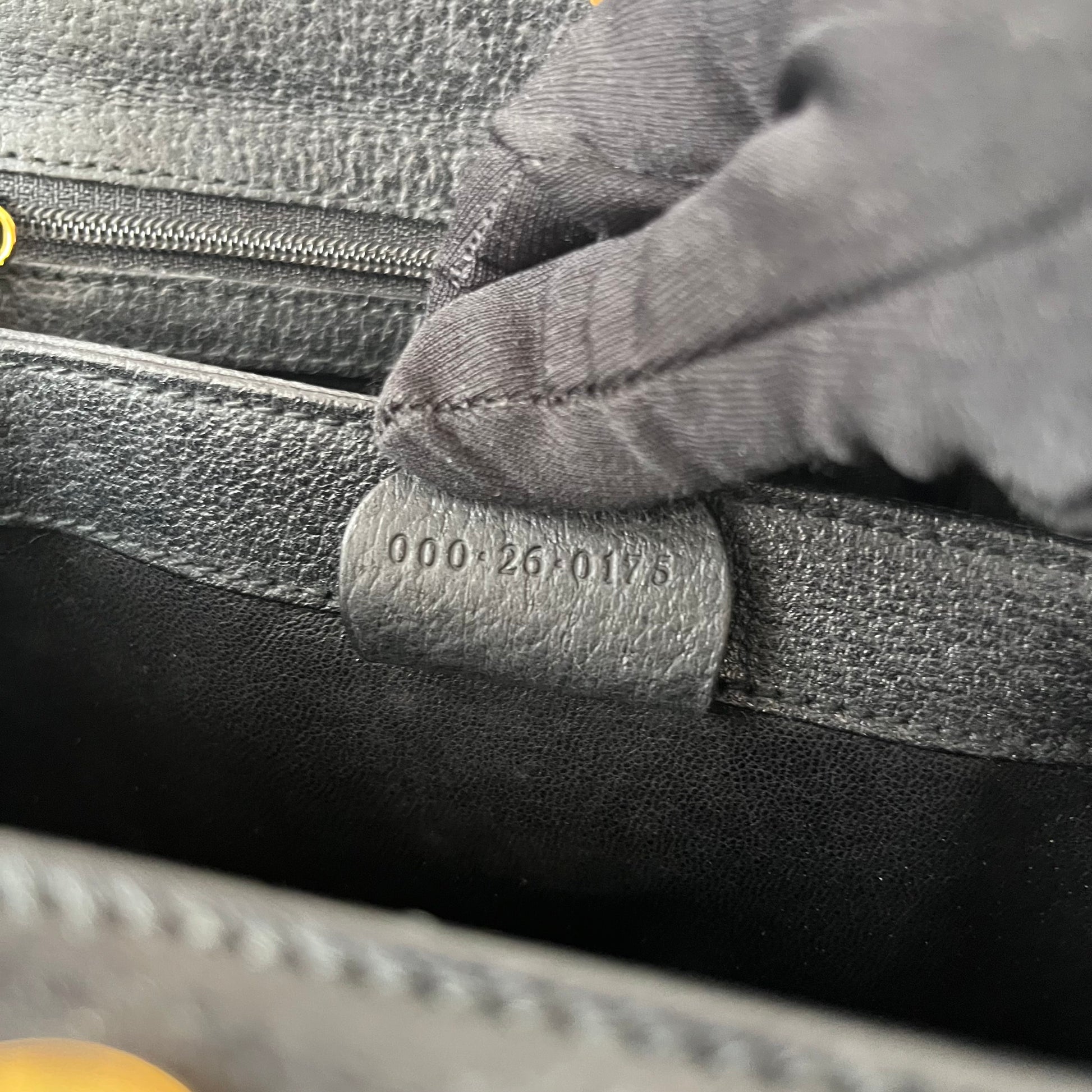description: black leather, bamboo turn lock, sits nicely on shoulder, original dust bag and paperwork included