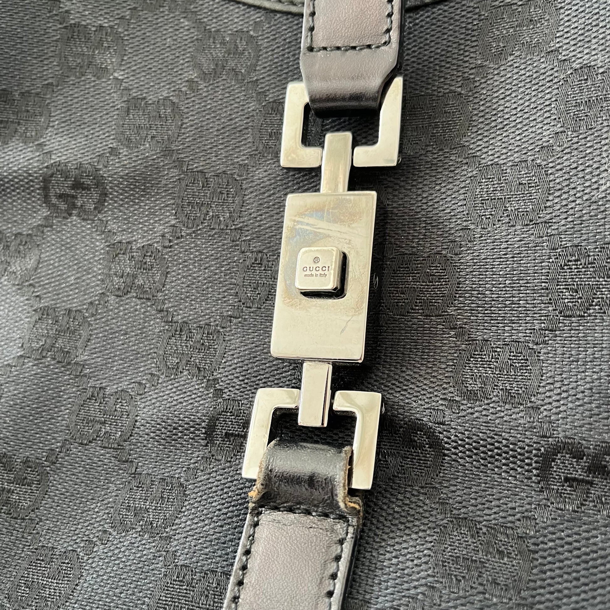 Gucci Black Double GG Canvas Jackie Bardot Shoulder Bag