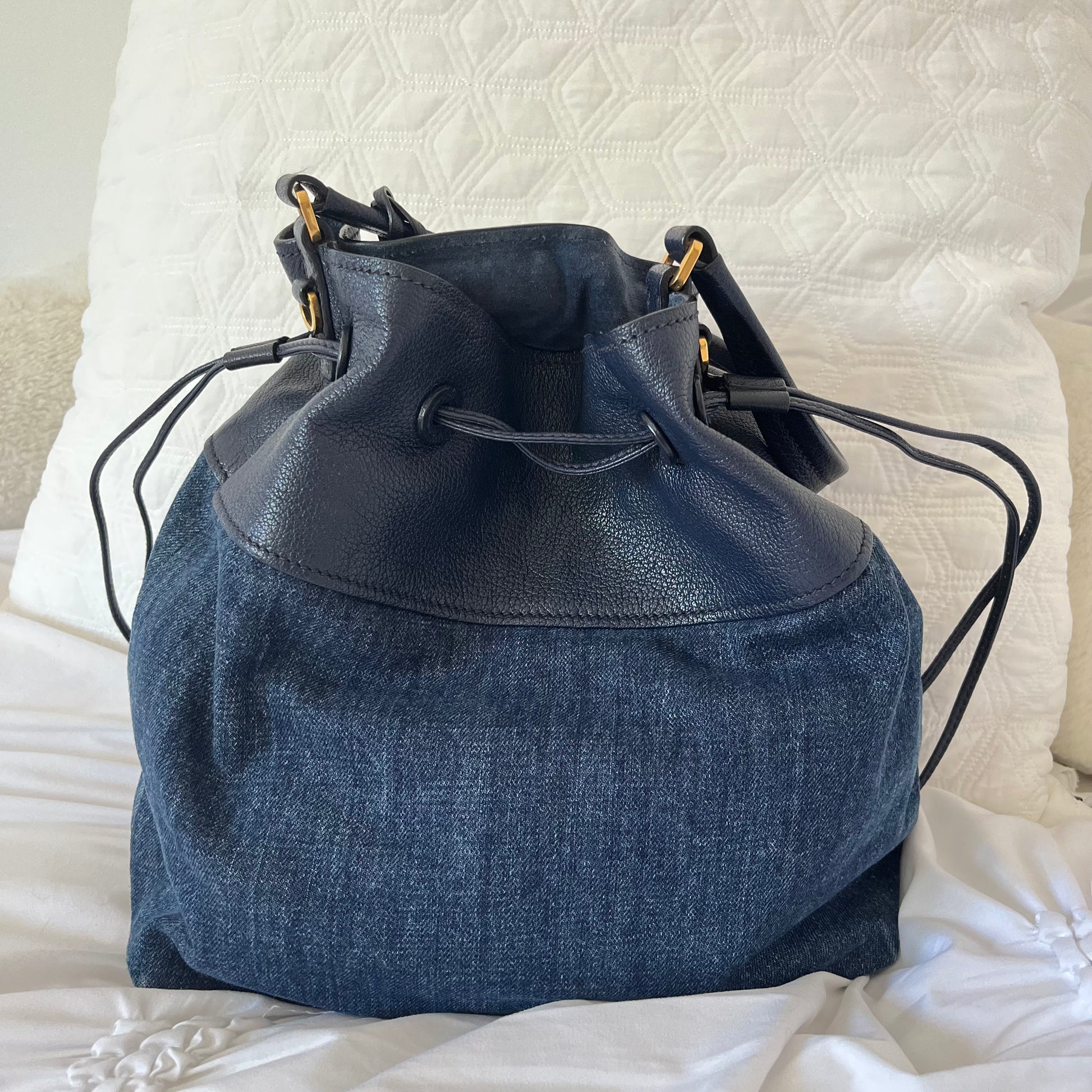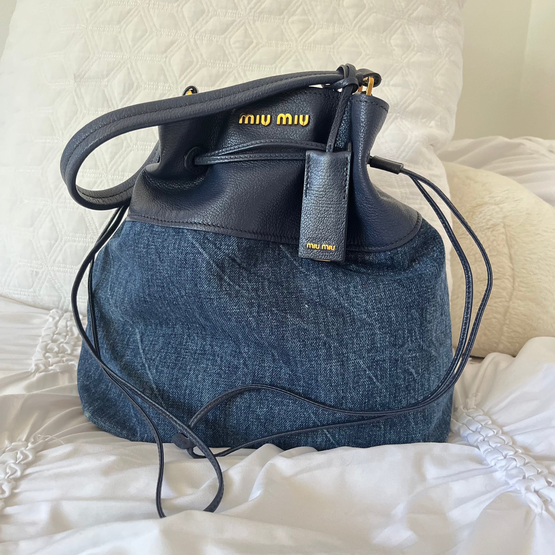 Miu Miu Leather Denim Drawstring Shoulder Bag